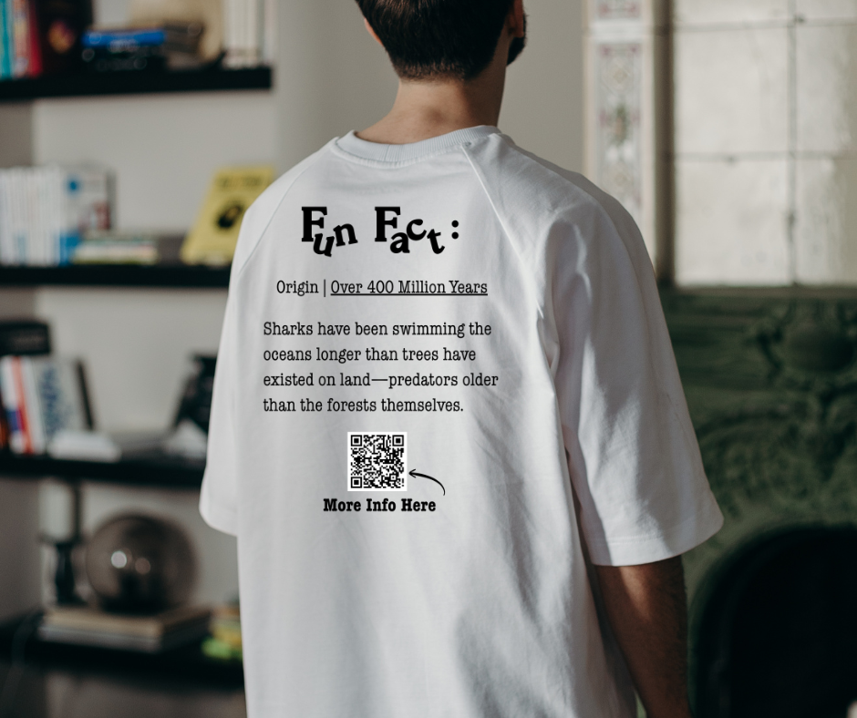 Shirtz that make you look twice — and think once more. A design up front, a fun fact on the back, and a code that takes you deeper.